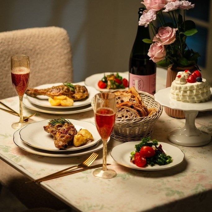 特に写真のセット商品があれば、チキンやシチュー、ケーキまでコースのようにトータルコーディネートできます。