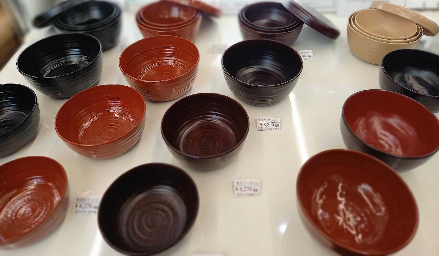 漆器(しっき)は、木地に漆を塗り重ねたもの。